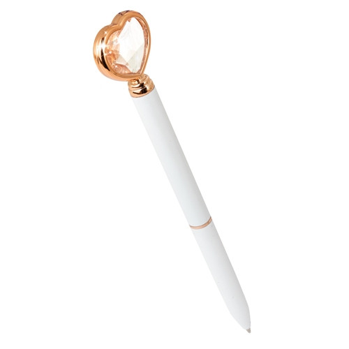 Bolígrafo con detalle corazón forma de diamante y acabados dorados.