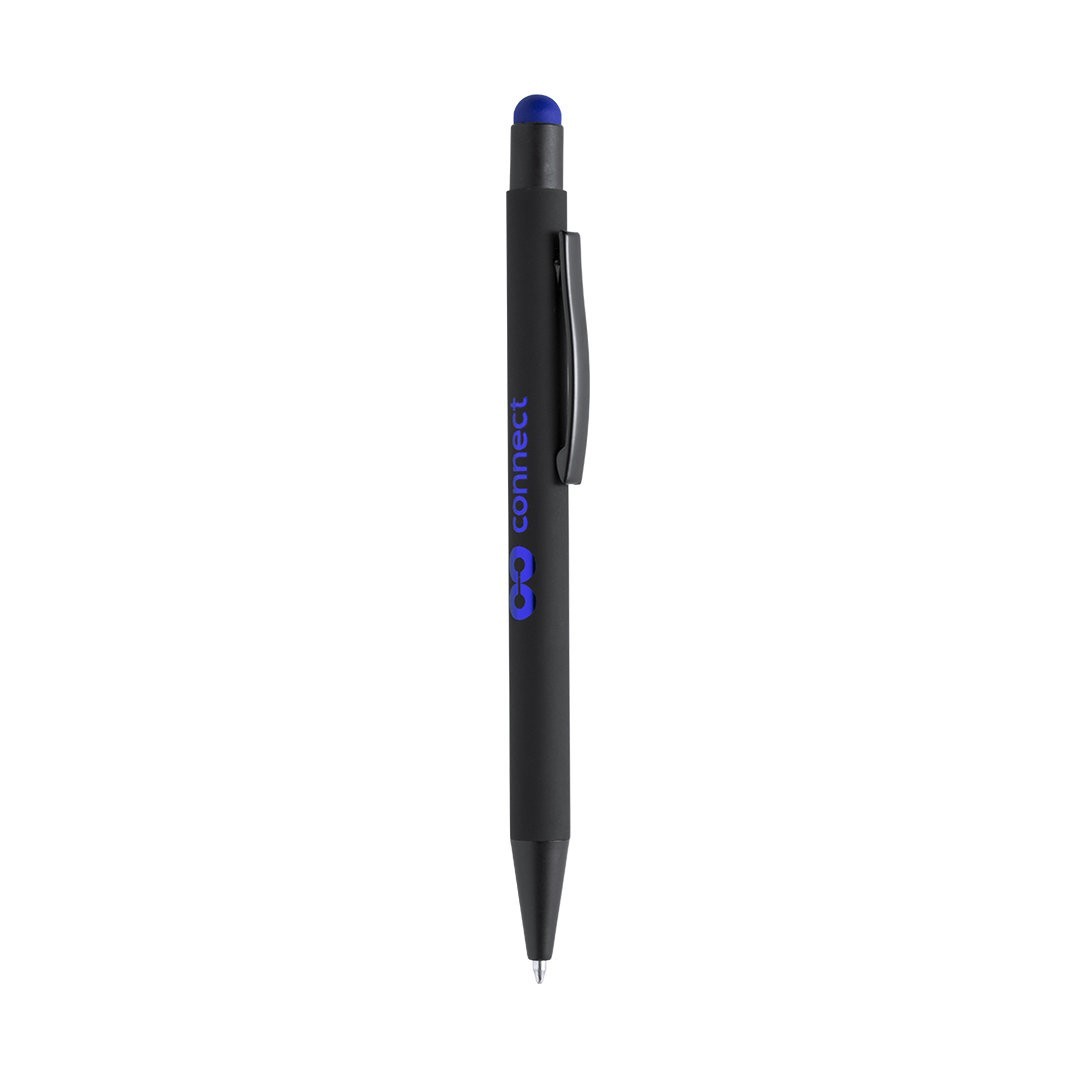 Bolígrafo puntero de mecanismo giratorio con cuerpo de acabado sólido en color negro y pulsador en variada gama de colores. Clip metálico en color negro. Especialmente diseñado para marcaje en láser y con un recubrimiento exterior especial para que tu publicidad quede perfectamente grabada, a juego con el color del puntero. Cartucho jumbo y tinta azul.
