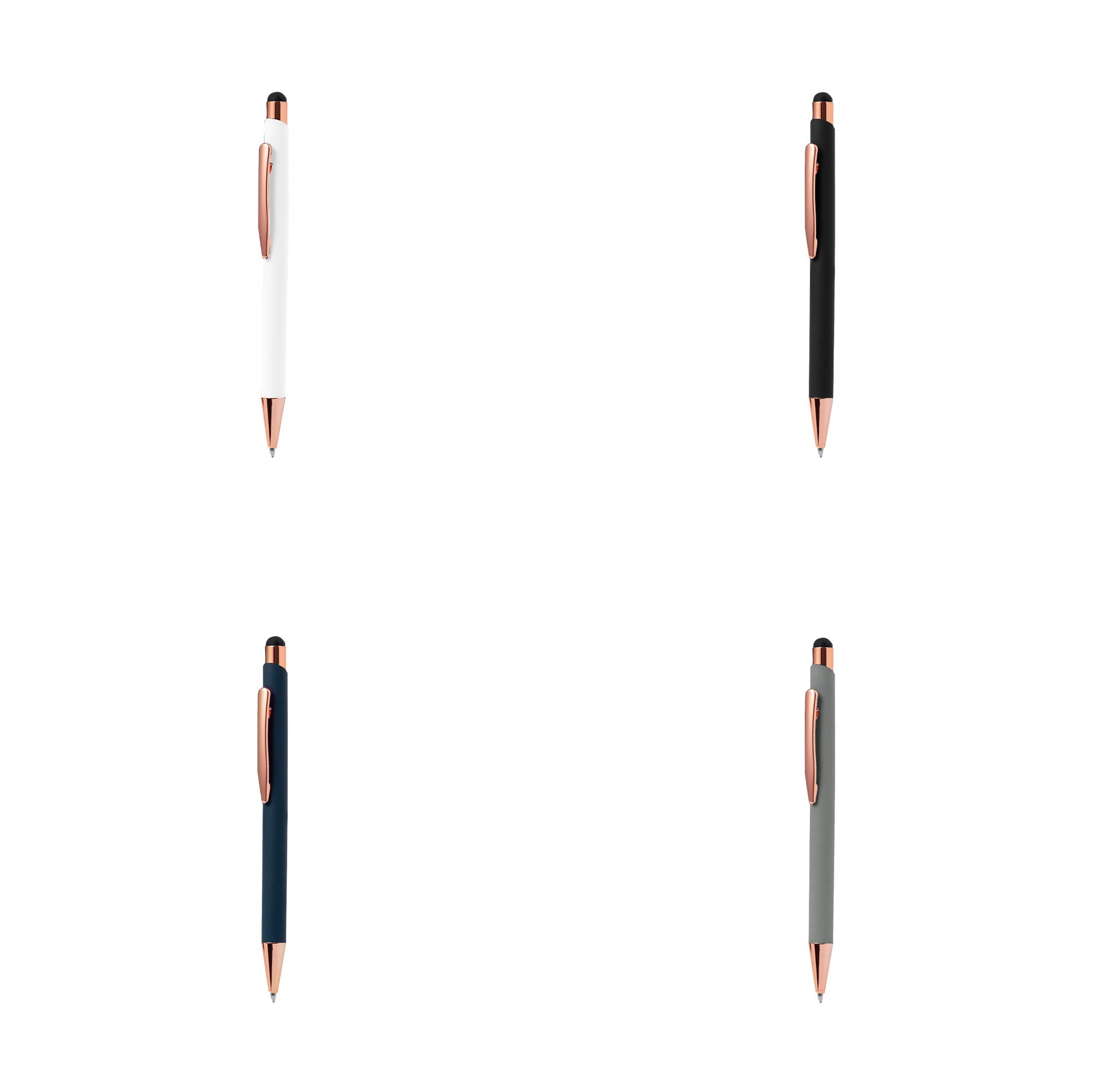 De mecanismo pulsador, con clip metálico y accesorios en acabado cobre. Cuerpo disponible en 4 distinguidos colores, de cartucho jumbo y en tinta azul.