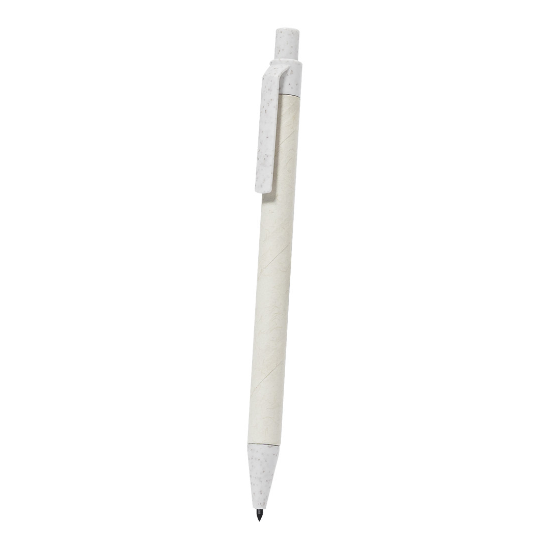 Set de bolígrafo y lápiz eterno fabricados con cartones de leche reciclados, presentados en funda de papel con semillas. Bolígrafo de tinta azul y lápiz con punta eterna, para así usar siempre el mismo lápiz y no generar residuos, ambos con mecanismo pulsador y clip a juego fabricados en Caña de Trigo, con distintivo grabado. Con distintivo de cartón de leche reciclado en el cuerpo. La funda incluye semillas de petunia, convirtiéndolo en papel plantable al final de su vida útil. Incluye instrucciones de plantado en la cubierta trasera.
