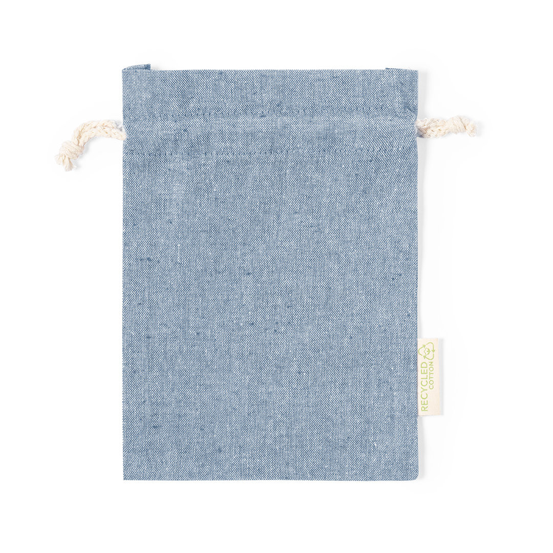 Bolsa de línea nature en resistente material 100% algodón reciclado GRS de 130g/m2. Certificación GRS (Global Recycled Standard / Estándar de Reciclaje Global), que garantiza el origen reciclado del material usado para fabricar el producto. Cierre de cordón de algodón y acabado cosido.
