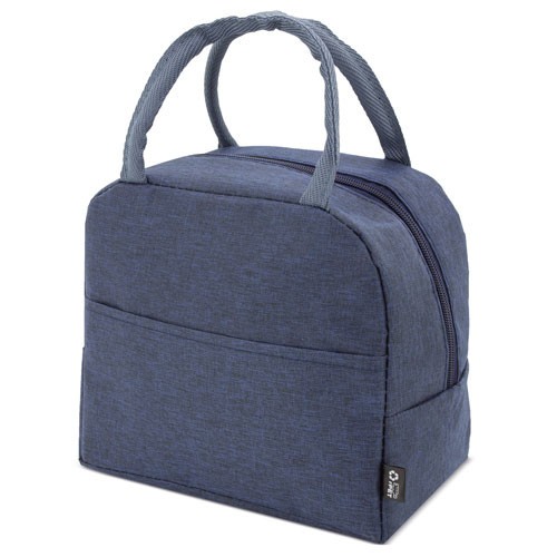 Bolsa nevera realizada en material RPET, incluye un bolsillo exterior. Disponible en tres colores royal, burdeos y gris.