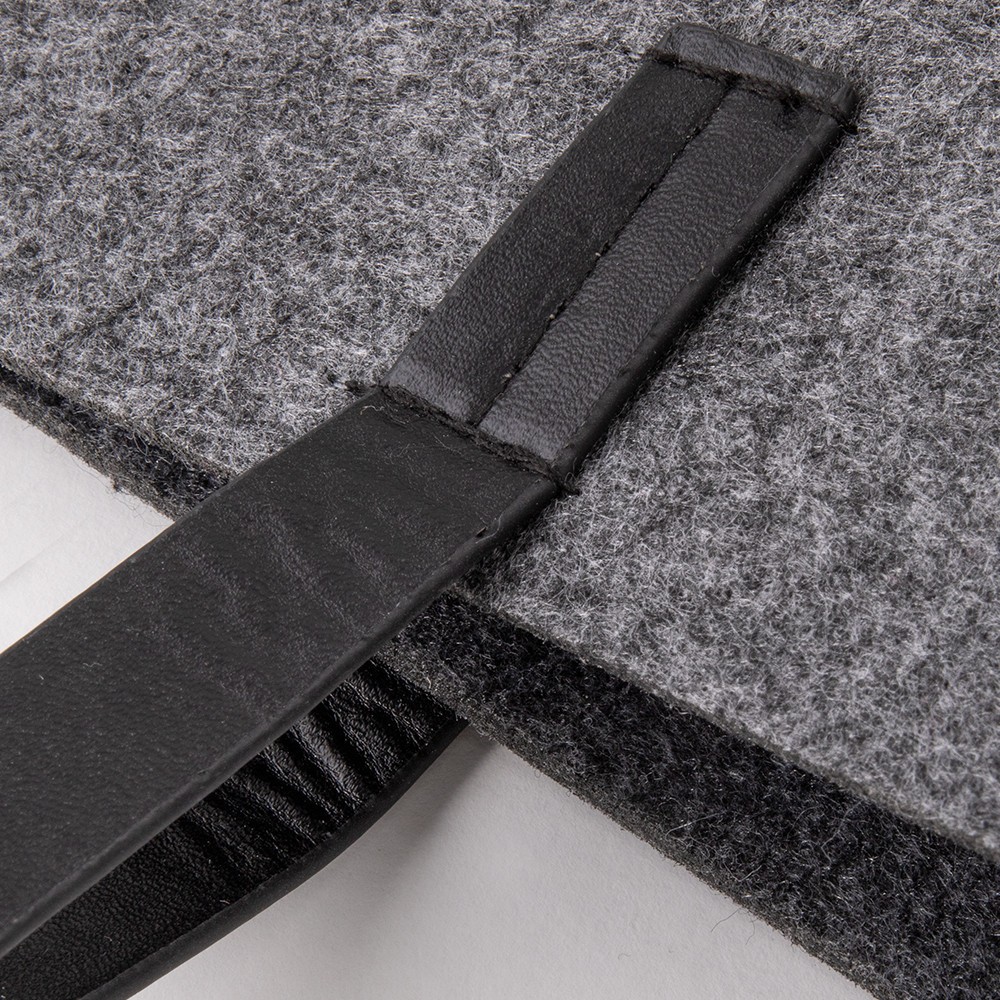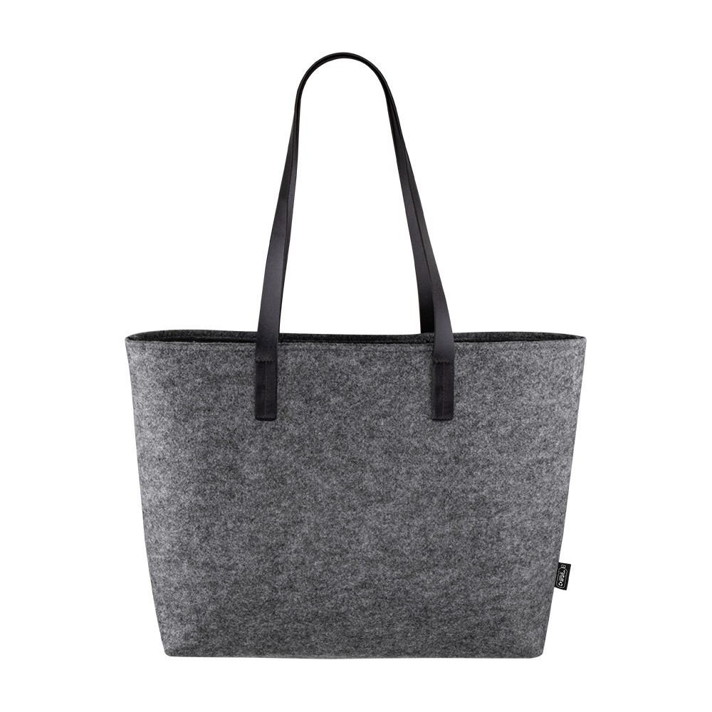 Bolsa fabricada en fieltro 100% RPET, con asas de cuero sintético.