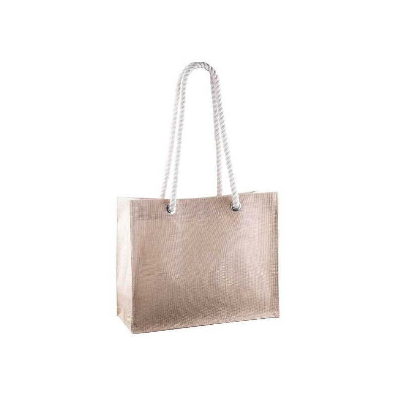 Bolsa rejilla para comida de RPET con bolsillo frontal para el marcaje del logo y cuerda de PP blanco en la parte superior para el cierre de la bolsa.