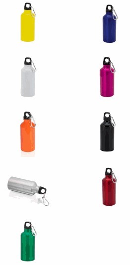 Bidón de 400ml de capacidad con cuerpo de acabado en aluminio en vivos y variados colores. Con tapón de seguridad a rosca y mosquetón metálico de transporte. Presentado en atractiva caja de diseño.