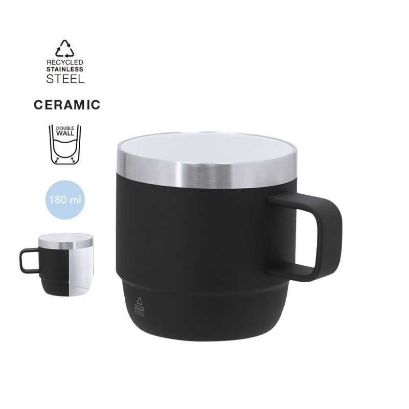 Taza metálica de 200ml de capacidad con diseño vintage y acabado blanco brillante con elegante detalle en cromado en el borde. Diseñada especialmente para la sublimación.