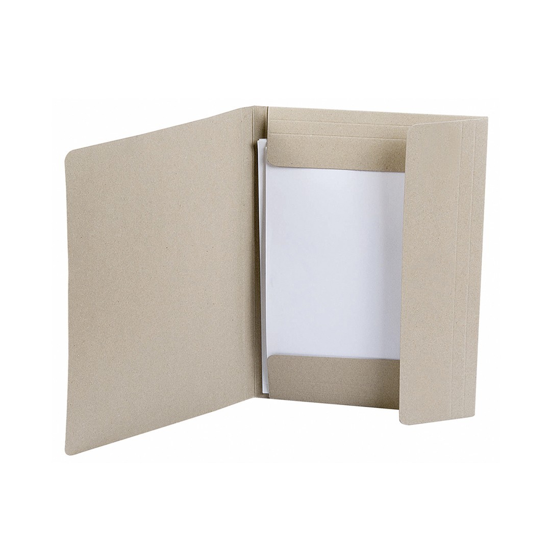 Carpeta ecológica de gran capacidad con cierre elástico en cartón reciclado flexible y con sistema de plegado tripe.