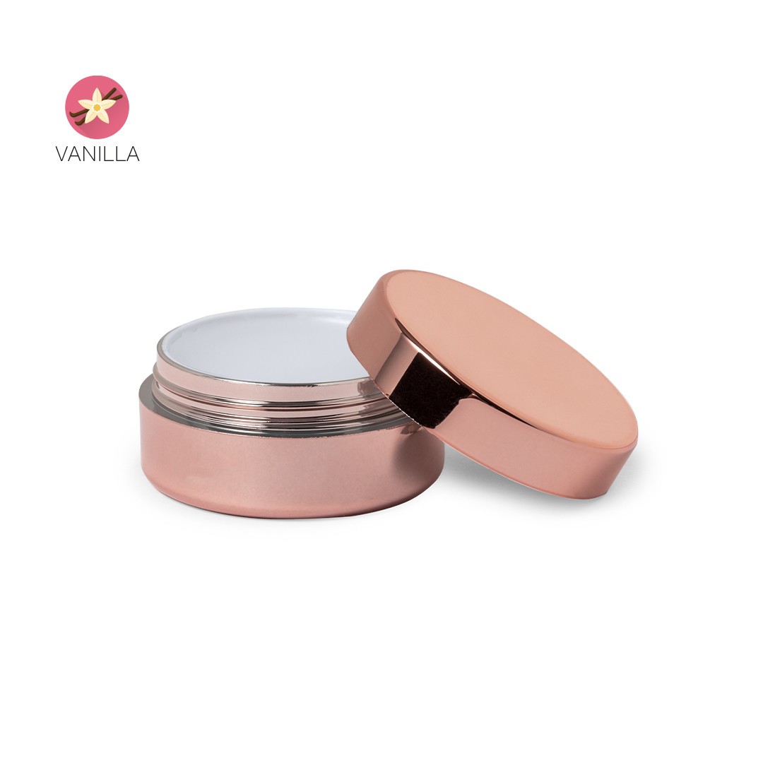 Aroma vainilla, con protección SPF15 y dermatológicamente testado. Con tapa a rosca y acabado brillo.
