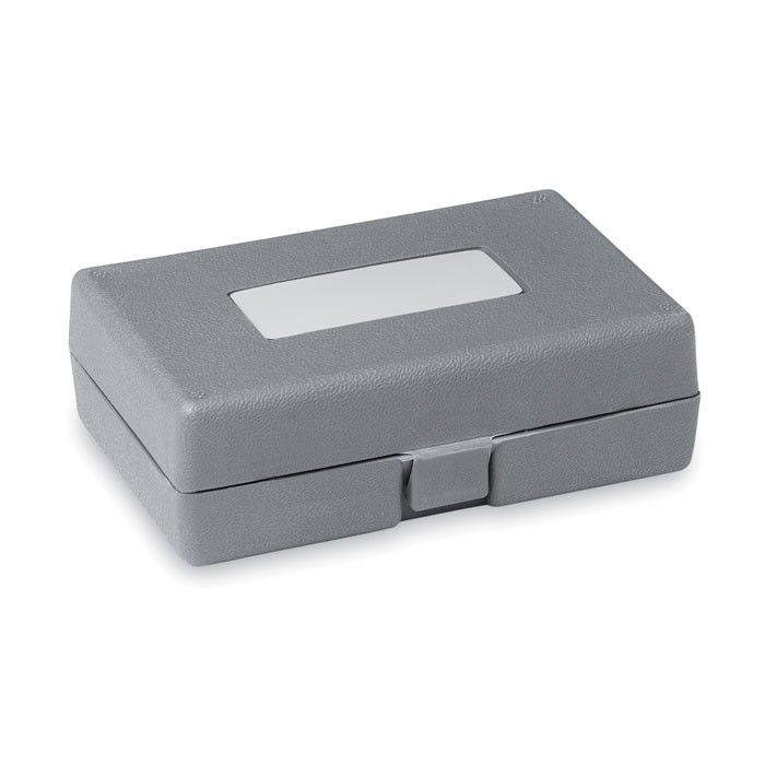 Set de herramientas de 25 piezas. Incluye: pinzas, 6 destornilladores, alicates, alicates de punta fina, 1 adaptador, 10 cabezas de destornillador y 4 vacíos. Presentado en caja de plástico.