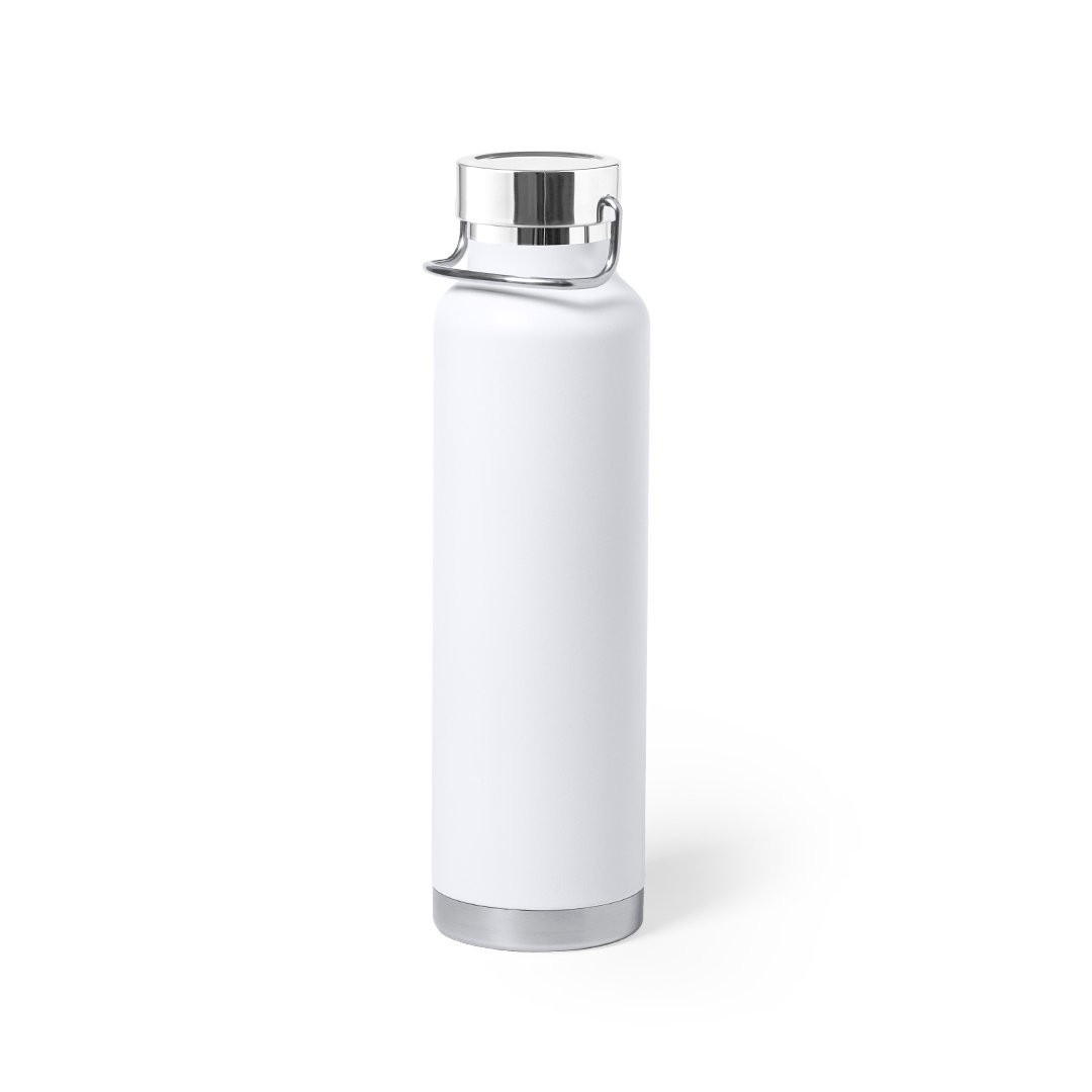 Bidón térmico de acero inox, con doble capa y aislamiento de cobre al vacío. El mismo le permite mantener el calor y el frio durante un tiempo más prolongado, llegando a las 12 y 48 horas respectivamente. De 650ml de capacidad, y disponible en variada gama de colores metalizados. Presentado en atractiva caja de diseño.