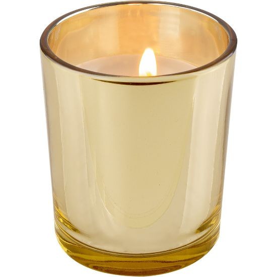 Vela de 85gr en vaso dorado de cristal y cera con aroma a bergamota de 6%.