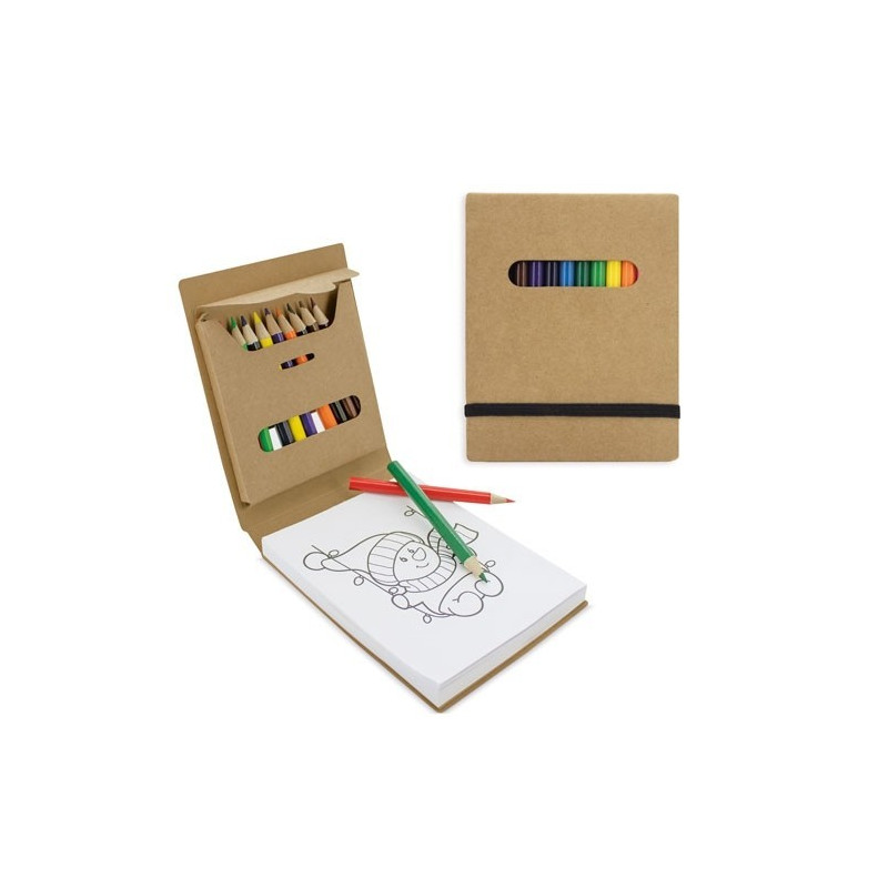 Set de 24 piezas presentado en estuche de madera para colorear, con cierre y bisagras de metal.