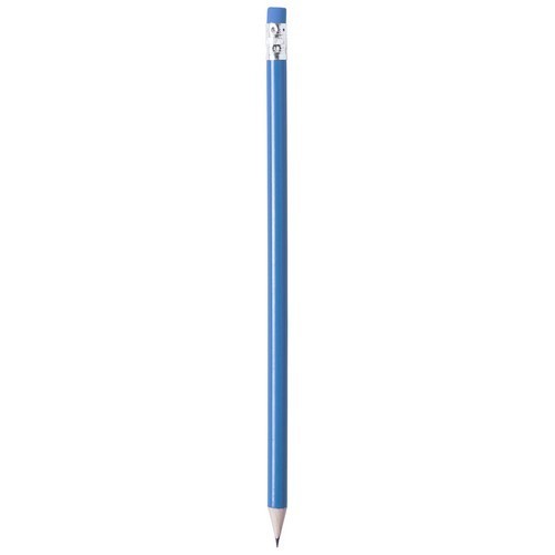 Lápiz de madera con cuerpo redondo en variada gama de colores brillantes y goma de borrar a juego.