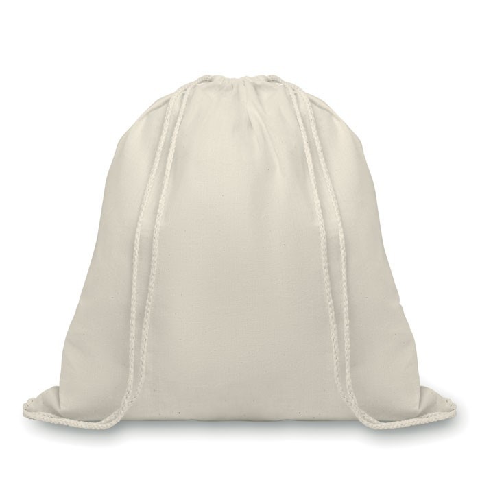 Mochila de cuerdas en algodón orgánico 105 gr/m². Certifiado GOTS que asegura una recolección de la materia prima, proceso de fabricación y etiquetado efectuados de forma socialmente y medioambientalmente responsable.