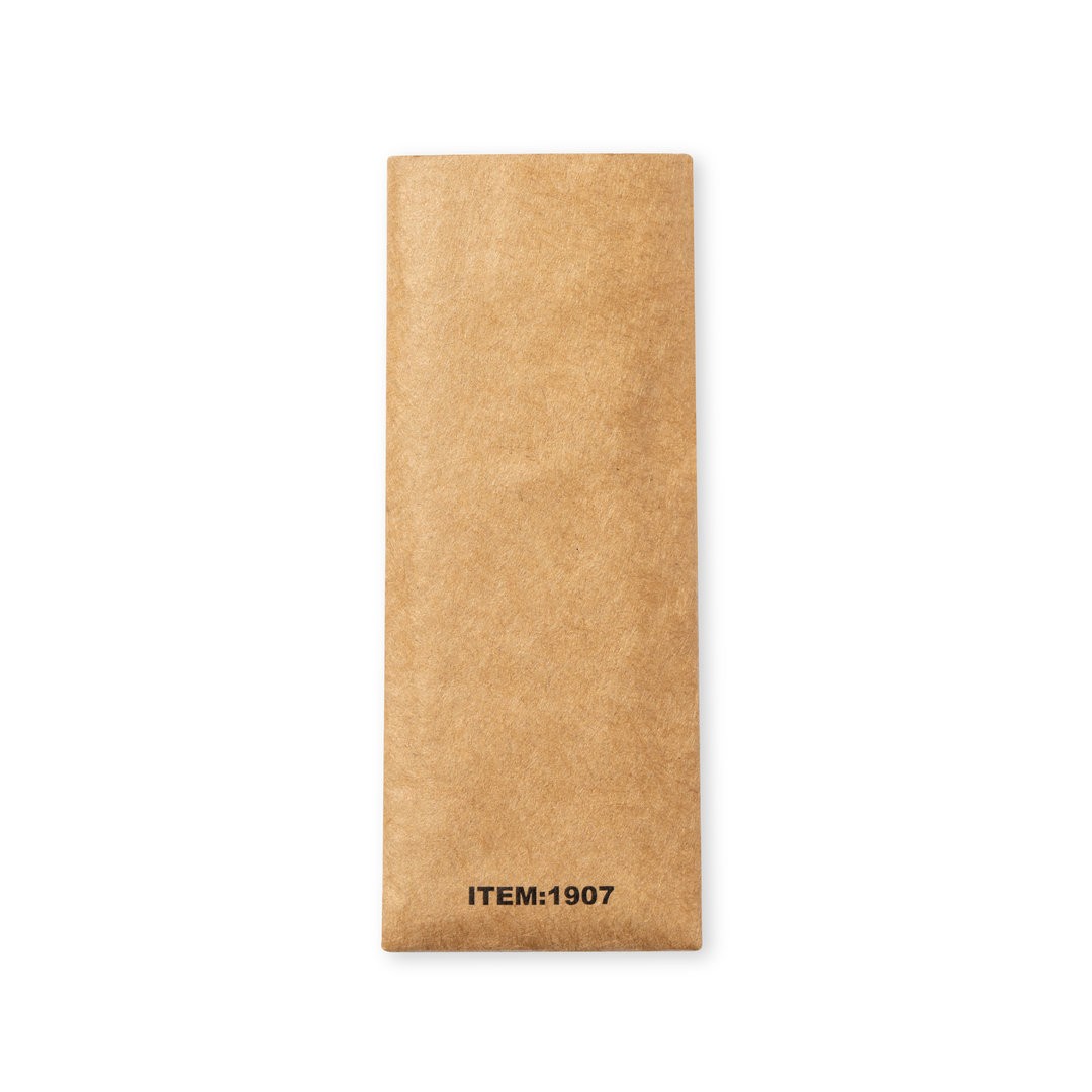 Llavero de línea nature fabricado en cuero reciclado. En tono marrón, con diseño rectangular y de acabado cosido. Grabado con distintivo cuero reciclado en una cara, con lado opuesto liso para impresión. Anilla metálica cromada y presentado en bolsa individual kraft.