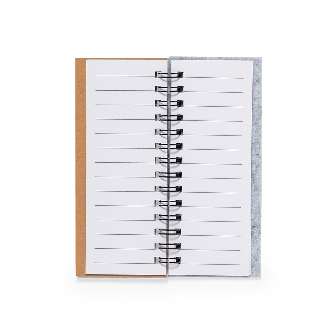 Bloc de notas fabricado en suave fieltro RPET. Con distintivo RPET en portada. Incluye: