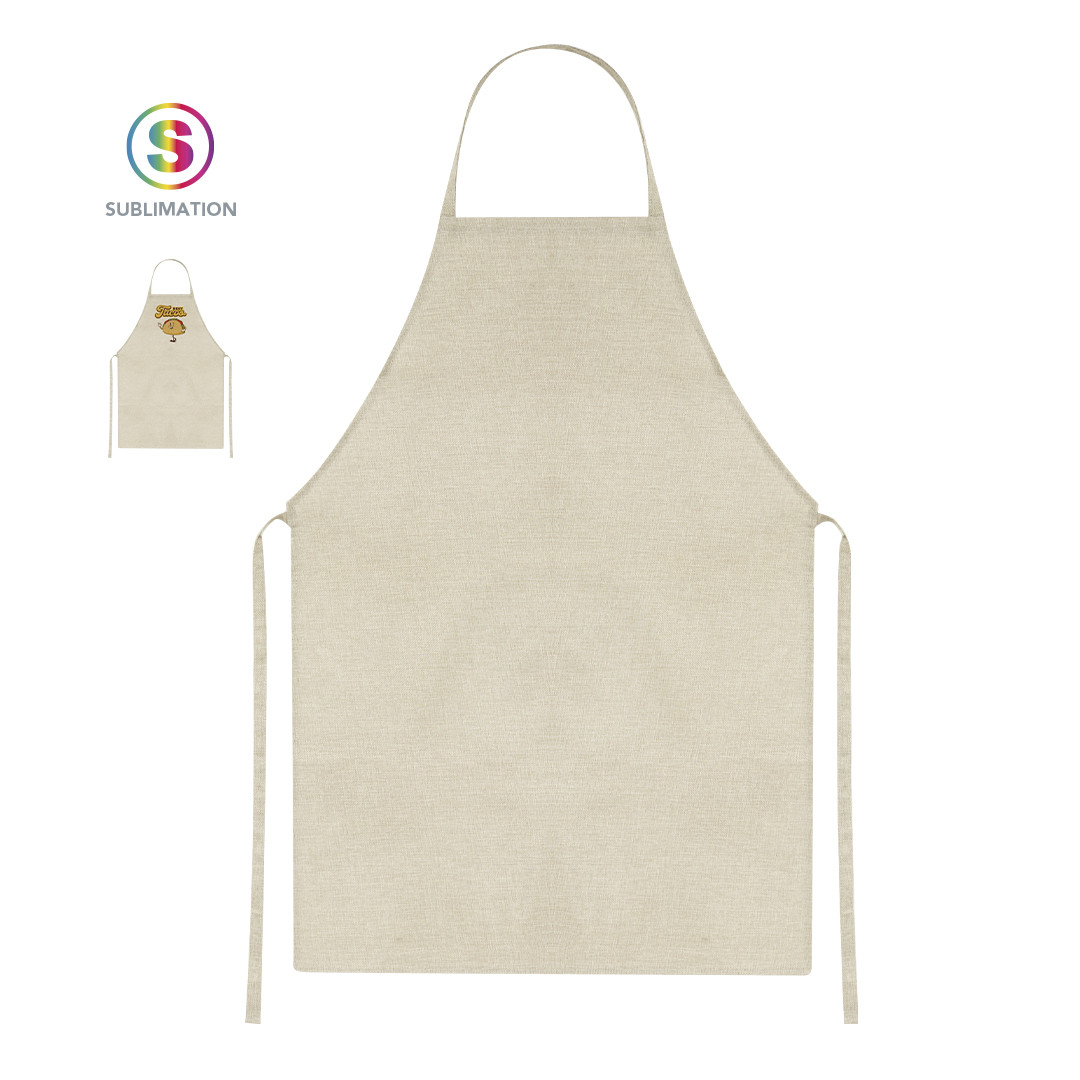 Delantal fabricado en suave y resistente poliéster, ideal para personalización mediante impresión por sublimación.