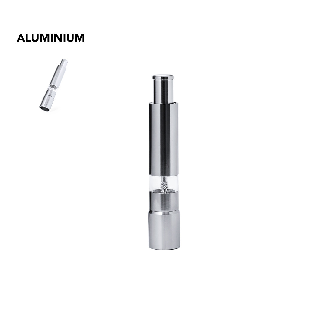 Molinillo manual para sal y pimienta fabricado en aluminio.