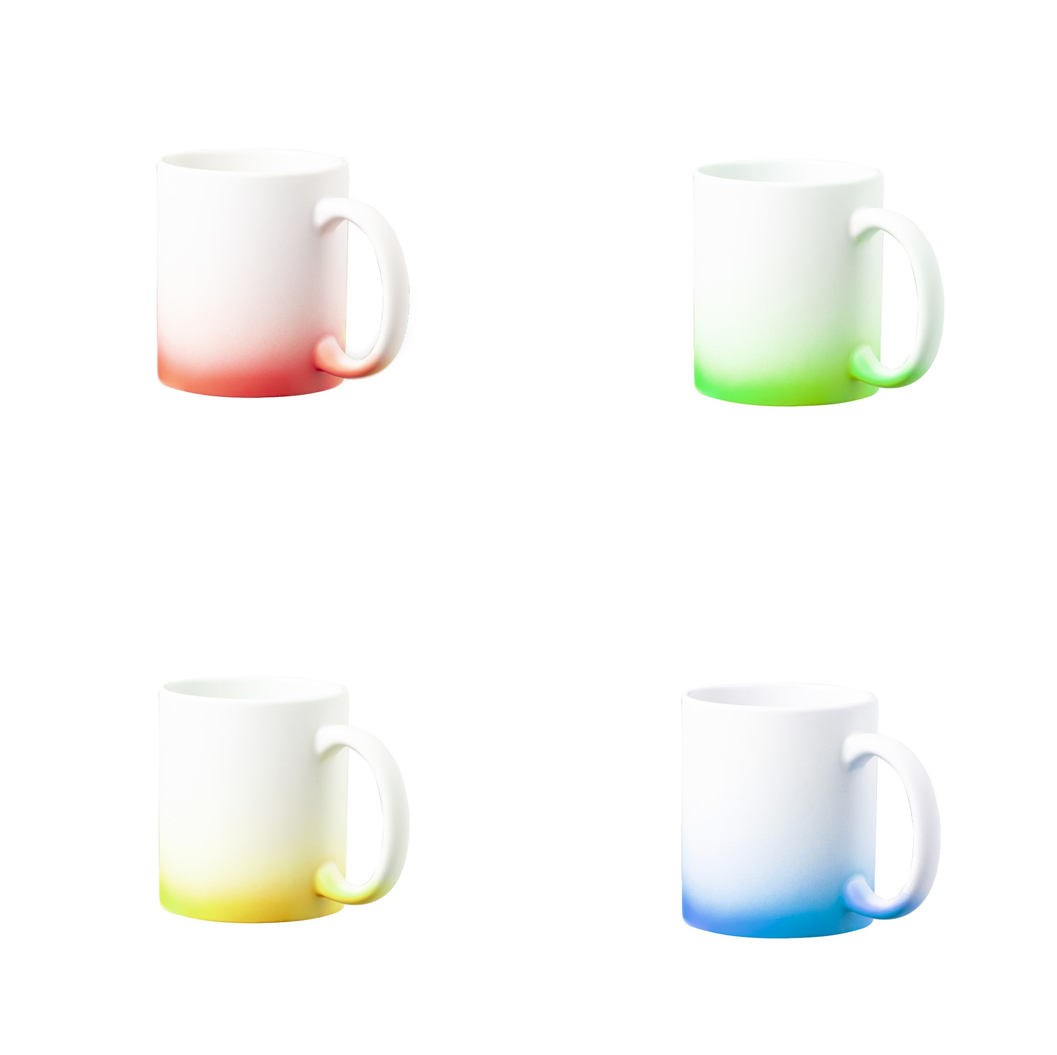 Taza de cerámica con 350 ml de capacidad y acabado mate. Especialmente diseñada para marcaje en sublimación. Disponible en diversos y llamativos colores degradados a blanco. Presentada en caja individual kraft.