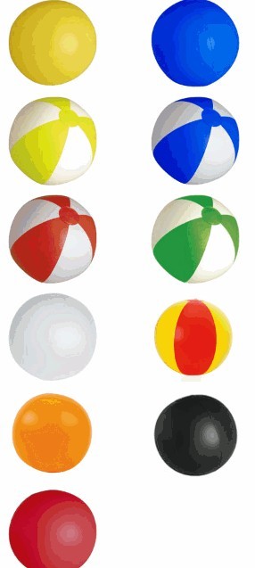 Balón inflable de PVC en variada gama de vivos colores. Disponible en diseños monocolor y bicolor.