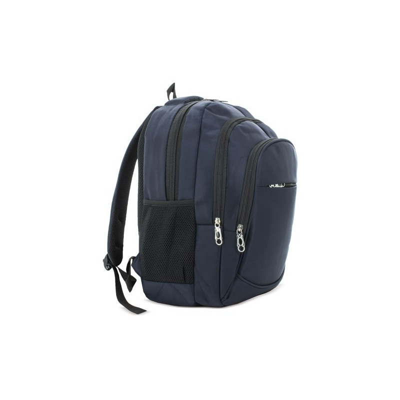 Mochila portadocumentos en resistente poliéster 600D de acabado denim. En diseño urbano, con bolsillo antirrobo, incluye conexión USB para carga de dispositivos móviles (cable incluido, batería auxiliar no incluida) y bolsillo acolchado para portátil de hasta 17 pulgadas. Refuerzos en fuelles con cierre de hebilla de seguridad y compartimentos con cierre de cremallera de doble tirador, con cintas de hombros y espalda acolchadas, de ajuste regulable. Accesorio para ajuste en trolley y bolsillo para ocultar las cintas de la espalda cuando se usa como portadocumentos.